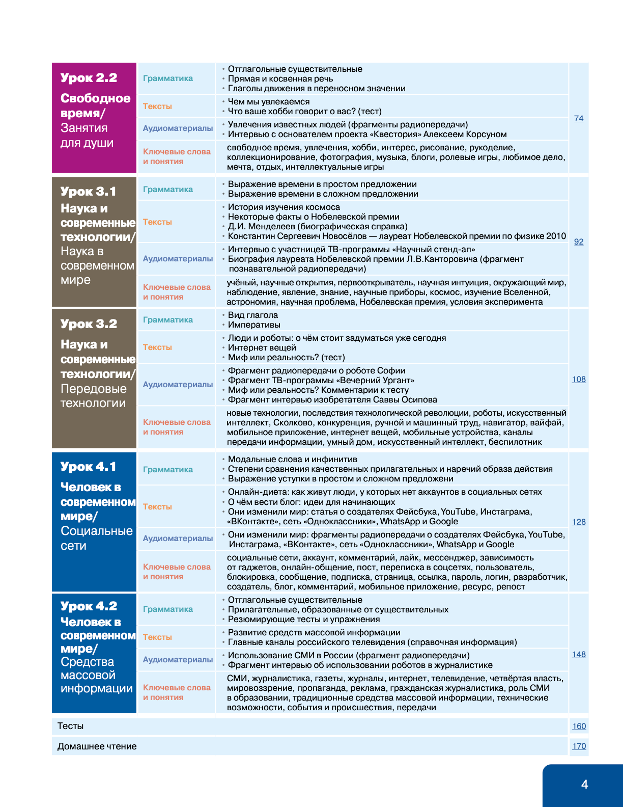 Ein besonderes Merkmal ist der Leseabschnitt mit adaptierten literarischen Texten russischer Autoren , der den Lernenden hilft, eine Verbindung zur authentischen Sprache herzustellen. Der Kurs schließt mit einem umfassenden Abschlusstest ab, der die Struktur der Prüfung TRKI-1 (TORFL-1) widerspiegelt und sich somit ideal zur Prüfungsvorbereitung oder für einen strukturierten Lernfortschritt eignet.